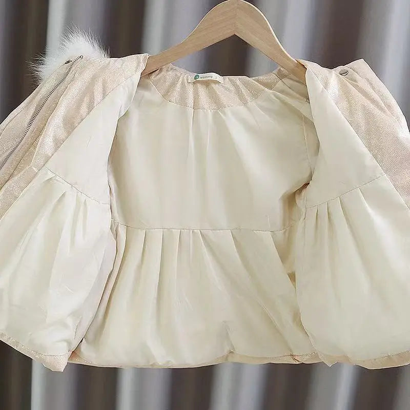 Warm, elegant, and beautifully designed — the perfect winter jacket for stylish little girls.