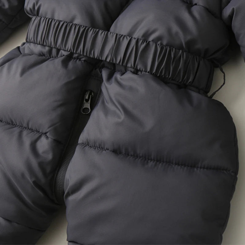 This thick, plus-velvet winter jumpsuit is designed to protect newborns and infants during the coldest days. With a cozy hood, matching gloves, and a gentle, warm lining, it’s the perfect all-in-one outfit for winter cuddles, stroller rides, and outdoor adventures.